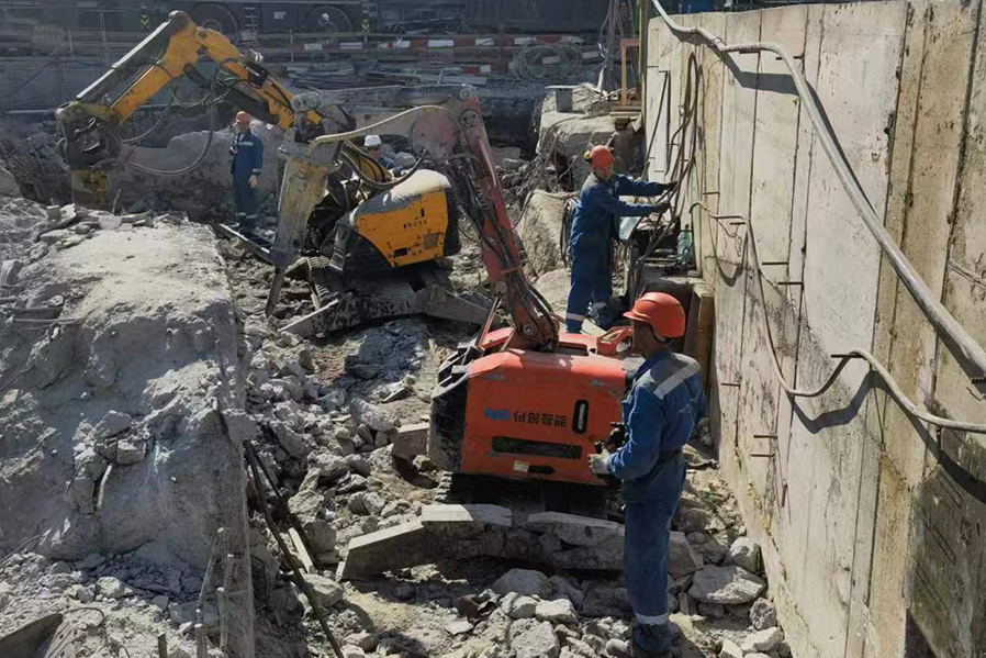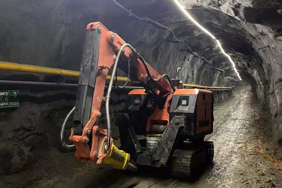 在薄礦脈的開采中,結構緊湊且可遠程控制的破拆機器人具有巨大應用潛力。地下礦山80%的傷亡事故發生在工作面,因此讓工作人員遠程操控鑿巖、爆破、錨桿安裝和大塊破碎將能確保這些工作人員的生命安全。       破拆機器人憑借其結構緊湊、仿生三節臂結構、無死角作業、遠程遙控操作等出色的多功能···